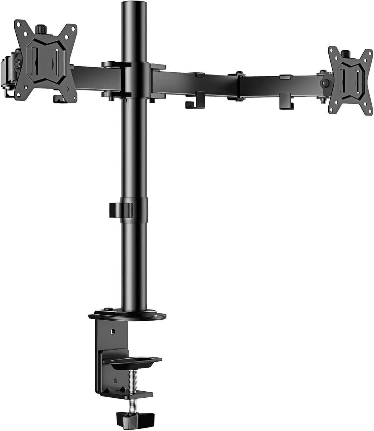 Heavy-duty arms hold up to 26.5 lbs per monitorOffers tilt, swivel, and rotation for ergonomic setup