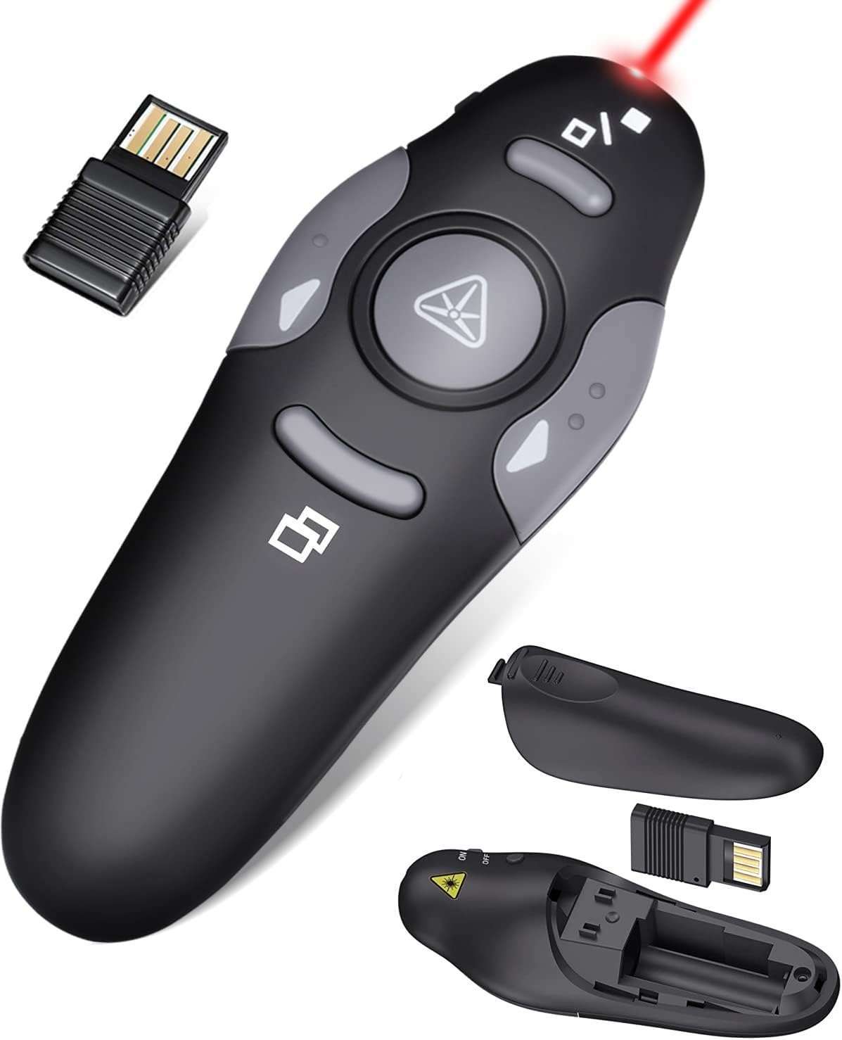 Long-range control up to 50ft.Red laser pointer for effective highlighting.