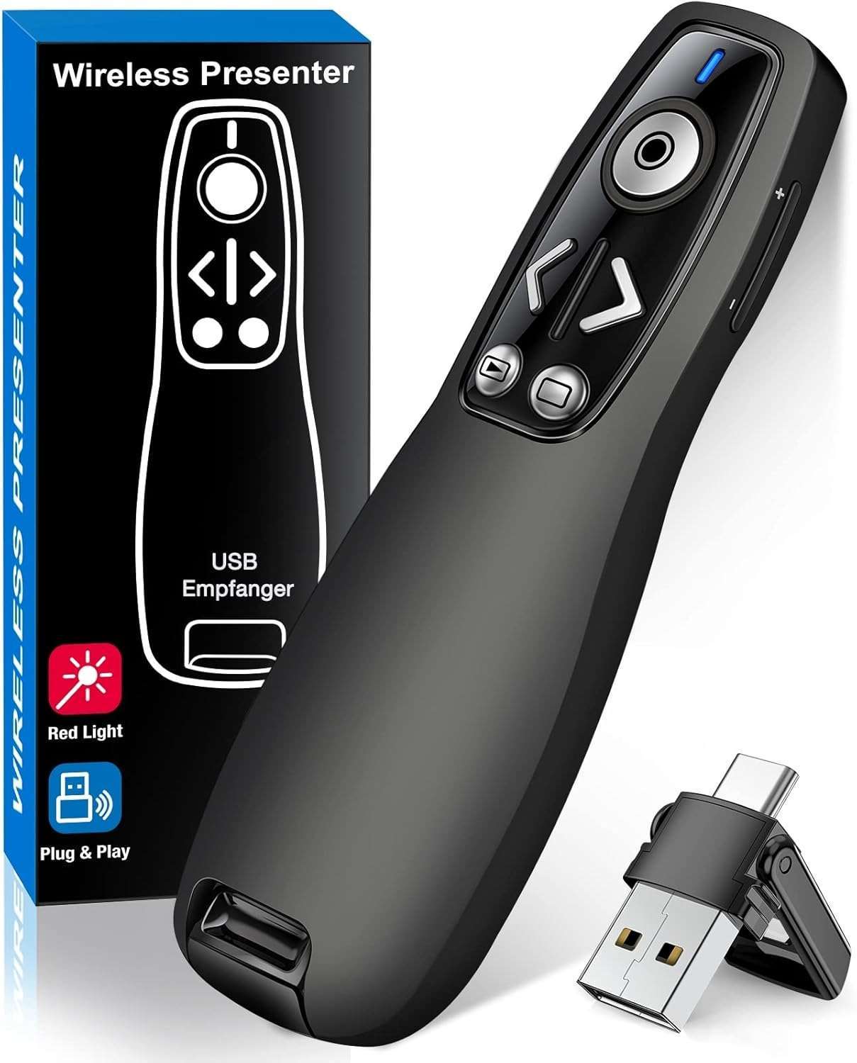 ELISWEEN 2-in-1 USB Type C Presentation Clicker Wireless Presenter Remote